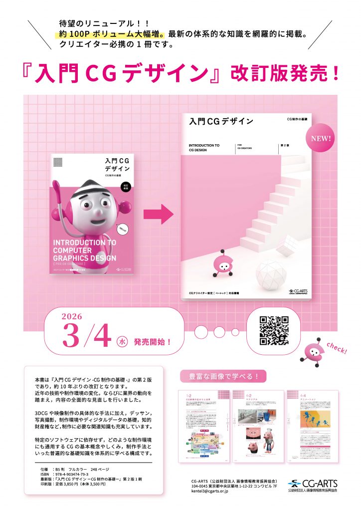 『入門CGデザイン -CG制作の基礎-』の第2版を2026年3月4日(水)に発行いたします。