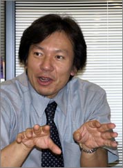 愛知万博の三井・東芝館。ここでいま話題となっているのが、来場者一人一人の顔を取り込んで映画のキャストに変換して登場させる「フューチャーキャストシステム」によるフルCGのSF映画『グランオデッセイ』だ。森島繁生教授は、テクニカルスーパーバイザーとしてこのシステムを開発・サポートしている。