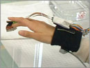 才脇研究室では、CGによる布の質感表現のほか、布の触感再現の研究も進めている。これは、視覚、聴覚では非常にリアルに呈示できるようになった仮想現実(VR)を触覚の領域でも実現し、さらにリアリティを高めようというもの。そのため、健常者と触感にとくに敏感な視覚障害者の方に協力してもらい、振動する超小型のモーターであるICPFアクチュエータを数十組み込んだ触感刺激発生デバイスでレザーやボア、タオルなどの人工触感を指先で試してもらったり、触感ディスプレイで指先を刺激した時の脳の活動をMRIで確認したりする実験も行っている。