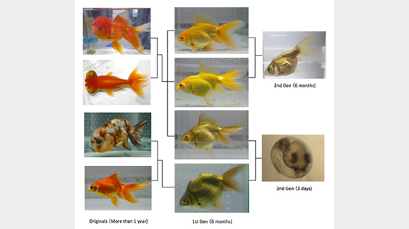 実際のところ、金魚の民意というか、金魚の気持ちとして、彼らはフナに戻りたかったのだろうか?僕らは金魚はおろか、同じ人間でも他人の気持ちを完全に理解することはできない。とはいえ、僕らは怒りたくて怒ったり、笑いたくて笑うわけでではない。それは常に自分の意志の外部からやってくる、何か出来事がきっかけになっているはずだ。だから、人の気持ちはその人の中に全てがあるんじゃなくて、その気持ちのいくらかの断片が、その人の周りの環境に点在しているんじゃないか。だから、金魚を飼っているひとは水槽を時々掃除したり、水草の手入れをしたりする。でも交配する相手を、自分の意志とは無関係にある大きな目的のために指定される事について、金魚はどう思うだろうか?僕が妻と出会い、そして結婚するまでの流れの中に、どれだけ自分の意志が反映されていて、どれくらい自分の意志以外の、偶然やランダムさが働いていたのかなんて全然わからない。そんな事を指定したり操作できるのは神様くらいのものだろうが、別に金魚にとって人間が神みたいな存在だと言いたいわけではない。そこにそういった階層はなくて、単純にそれぞれが生きている時間や空間のスケールが違うから、お互いに与える影響や関係性が違ってくるということだ。大きな動物が普通に歩くだけでアリみたいな小さな生物は何匹も踏みつぶされてしまうし、逆に小さな細菌やウィルスの通常の生の営みによって大きな動物が死んでしまう事もある。そういうものだ。果たして、僕らはそういったスケールが違うことによる、(ときに残酷な結果に繋がるかもしれない)影響や関係性を、どこまでコミュニケーションとして捉える事が出来るだろうか?