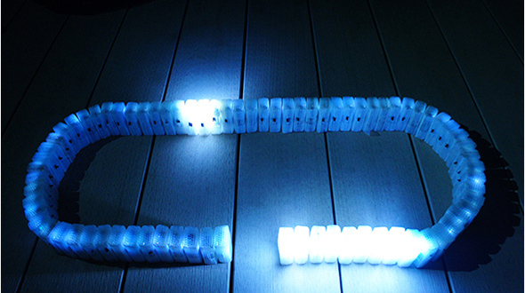 ろうそくの炎の様にLEDの光が移動していく様子はまるで自然現象を利用しているかのような温かみに似た温度を感じる事のできる作品。これをあえてプログラミングとハードウェアを駆使して生み出す事で無機質な物体から感じる有機的な体験はこれからのハードウェアに対して必要とさえ感じてしまう。