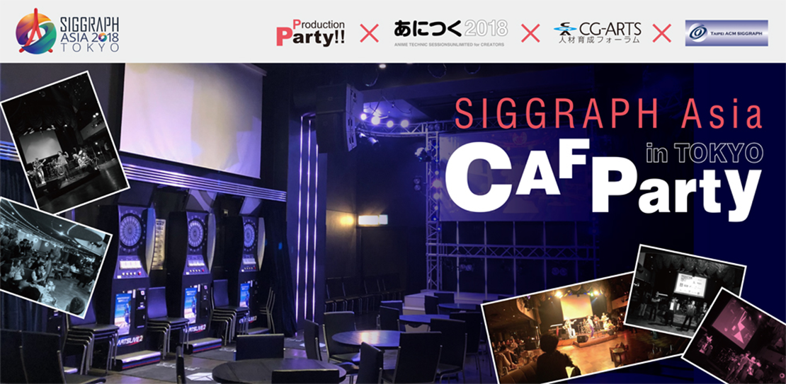 全世界から一万人もの関係者が集まるこの機会に、日本のプロダクションが主催するパーティを12月6日(木)20時より行います。 また、このプロダクションパーティは、SA2018のコンピュータアニメーションフェスティバル(CAF)公式パーティとして開催するものです。