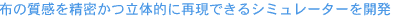 見る角度を変えた時の質感変化も確認できない。また、研究レベルでは織物の立体構造シミュレーションを扱ったものもあるが、織物内部で糸が織り込まれている様子をいろいろな角度や大きさを変えて見られる段階で、光沢感などの質感は考慮されておらず、現実の布の高精彩可視化には結びついていないという。